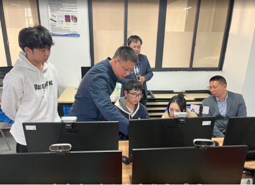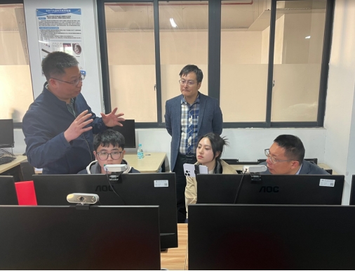 交流过程中,我院院长王煜林首先对来访教师表示了热烈欢迎,随后带领黄主任和张老师参观了我院机房、实验室、工作室等,王院长介绍了机房在日常教学、课程实践以及学生竞赛训练等方面所发挥的重要作用,以及学院在优化机房资源配置方面的经验。