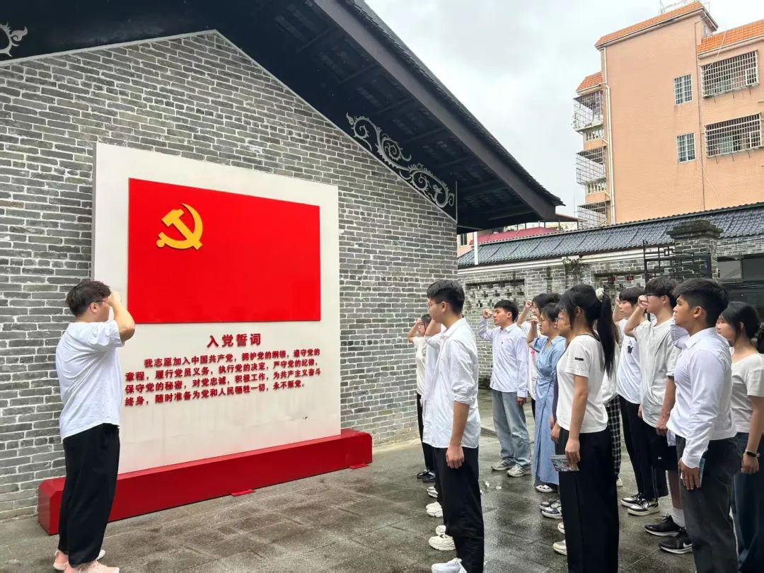 参观结束后,师生党员在西罗乡抗日民主政府旧址前重温入党誓词。他们神情肃穆,整齐地高举右拳,誓言铿锵有力,再次回顾入党时的初心,进一步坚定了为党和人民事业不懈奋斗的使命。