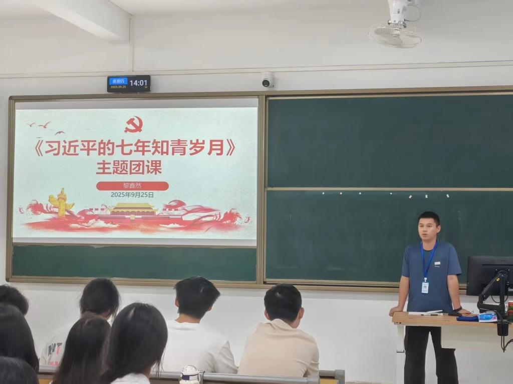 为深入推进青年成长与党史学习教育,9月25日下午,我院团总支·学生会在6栋103教室开展主题为“感悟知青岁月,汲取奋进力量”的《习近平的七年知青岁月》专题团课学习。本次团课由团总支书记黎鑫然主持,出席本次团课的有团总支·学生会代表、24级全体团支书以及2025年入团积极分子,现场学习氛围浓厚热烈。团课伊始,黎鑫然老师围绕《习近平的七年知青岁月》中 “知青说”“村民说”“各界说” 三个篇章展开导读。他详细阐释了这本书通过 29 名采访对象的口述实录,全方位还原习近平总书记知青时期艰难生活、展现其 “从真我到忘我再到无我” 成长历程的核心价值,明确了本次团课 “学思想、悟精神、强担当” 的核心目标。