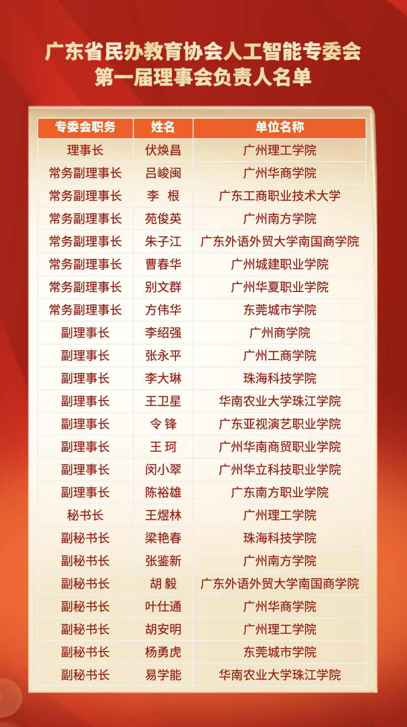 附:广东省民办教育协会人工智能专委会第一届理事会负责人名单
