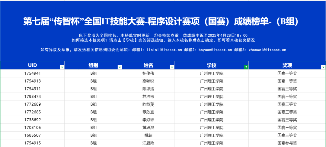 作为本科教学评估的重点方向,威廉希尔紧扣“学生能力产出”,将赛事深度融入教学体系。本届大赛中,程序设计赛项(B组)的10名学子实现奖项全覆盖: