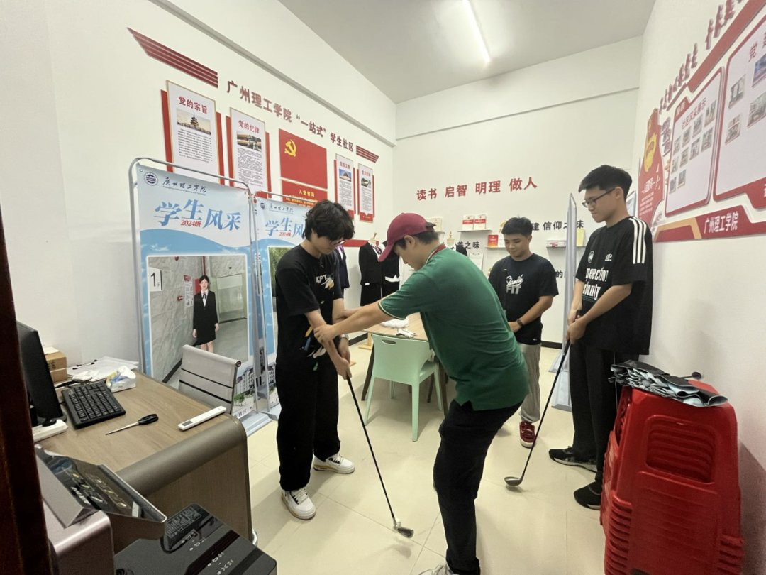 5月9日下午,我院在惠州校区宿舍3栋和4栋的社区活动中心精心策划了第十周社区活动。此次活动吸引我院十名怀揣着对高尔夫运动好奇与渴望的同学踊跃参与,同时,我院惠州校区陈朝阳老师亲临现场,向同学们讲解高尔夫相关知识。