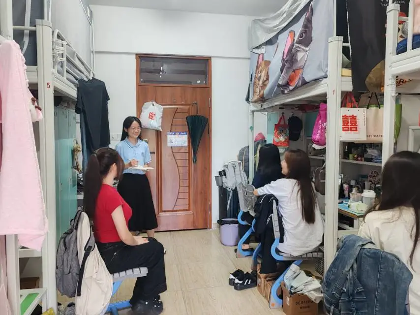 在轻松的氛围中,班导师们始终将宿舍安全放在首位。他们提醒同学们严格遵守用电规范,杜绝违规电器的使用,确保宿舍用电安全;同时强调宿舍卫生的重要性,倡导同学们养成良好的卫生习惯,保持宿舍的整洁与美观,为自己和室友营造一个舒适、健康的学习与生活环境。