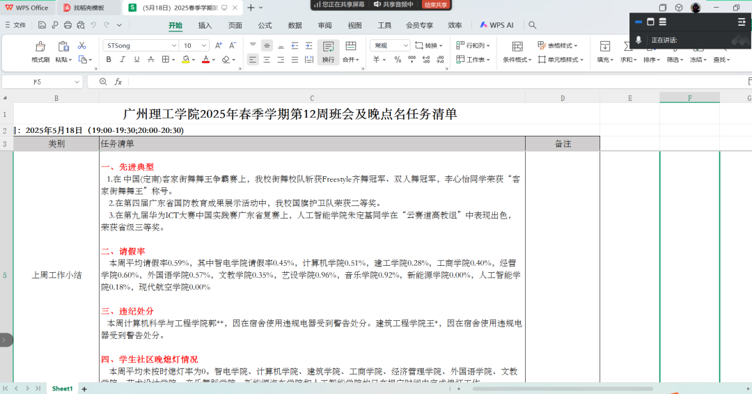 5 月 18 日晚,威廉希尔各班班委的组织下,成功召开了第十二周主题班会。本次班会围绕学校及学院的重要工作安排展开,内容丰富,重点突出,旨在为同学们的学习生活提供明确指引,助力其全面发展。
