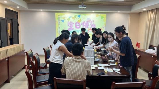 活动现场处处洋溢着温馨气息:长桌上整齐摆放着品类丰富的新鲜水果,搭配着奶油细腻的定制蛋糕,形成一幅诱人的画面。当《生日快乐》的旋律缓缓流淌,在场教职工不约而同地轻声跟唱,寿星们在摇曳的烛光中闭眼许愿,温馨场景感染着每一个人。