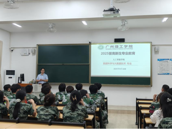 陈智勇主任首先聚焦大数据专业,用数据展现行业活力:“2024 年广东大数据产业规模破 1.8 万亿元,人才缺口超 20 万。” 他介绍专业核心课程企业共建的实践实验室,强调 “实战为王”,对新生提出 “三阶段目标”:首学期夯实数学编程基础,第二学年考初级证书,第三学年参与企业项目。