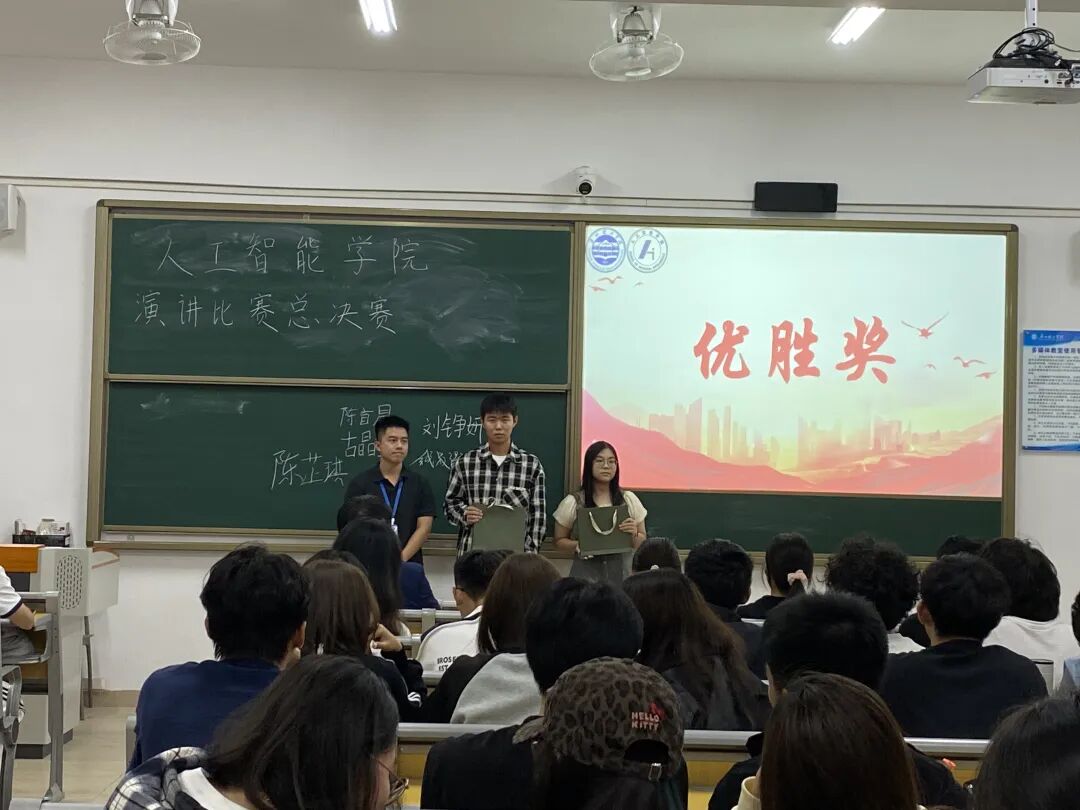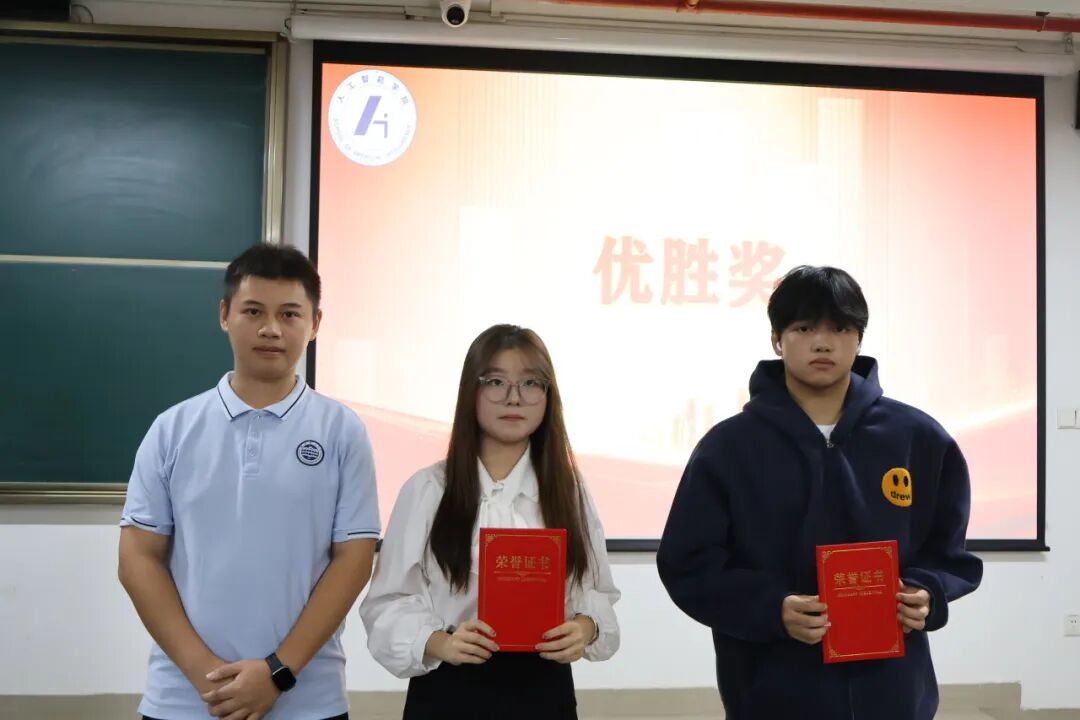 赛事采用一轮制赛程,选手们怀揣澎湃热忱与深度思考登台亮相。他们从“内卷”的焦虑困境与“躺平”的消极姿态双向切入,层层剖析后给出破局之道——锚定生活航向,坚守自我本心。陈朝阳老师对比赛进行专业细致的点评,既表扬了选手的勇敢,也给我们带来更深层次的思考。经过评委们的审慎考量,最终决出冠军陈芷琪、亚军钱晟灏、季军刘铮妍。活动尾声,评委为获奖者逐一颁奖,全体合影定格高光时刻,每一份荣誉都镌刻着选手们的实力积淀与成长足迹。