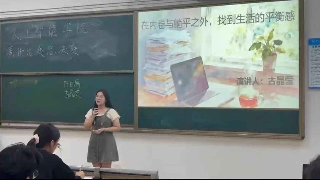 在2栋405教室,“内卷与躺平”主题演讲精彩启幕。本次出席演讲比赛决赛的评委是我院辅导员陈朝阳、刘振宇、学生蒋琼慧。