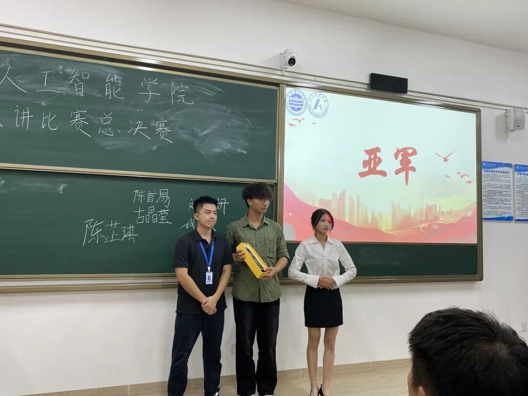 紧接着的第二轮即兴演讲环节,三位晋级选手临阵不乱、从容应答,凭敏捷思辨与流畅表达尽显青春锋芒。黎鑫然老师对比赛进行点评,不仅肯定了选手的闪光点,还对选手表现进行指导。经巅峰对决终分胜负——冠军陶丽、亚军龚超平、季军曾伟奇。活动尾声,评委们为2名优胜奖获得者及冠亚季军逐一颁奖。