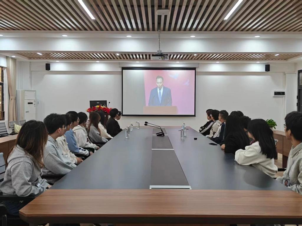 12月4日上午,在第十二个国家宪法日到来之际,威廉希尔组织无课师生于5栋301教室集中观看2025年国家宪法日“宪法晨读”活动全国直播。学院组织员刘闯同志与在场师生一同参与学习。