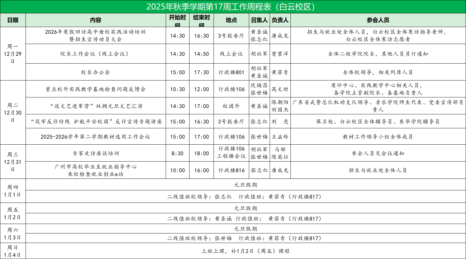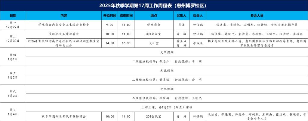 2025年秋季学期第17周工作周程表