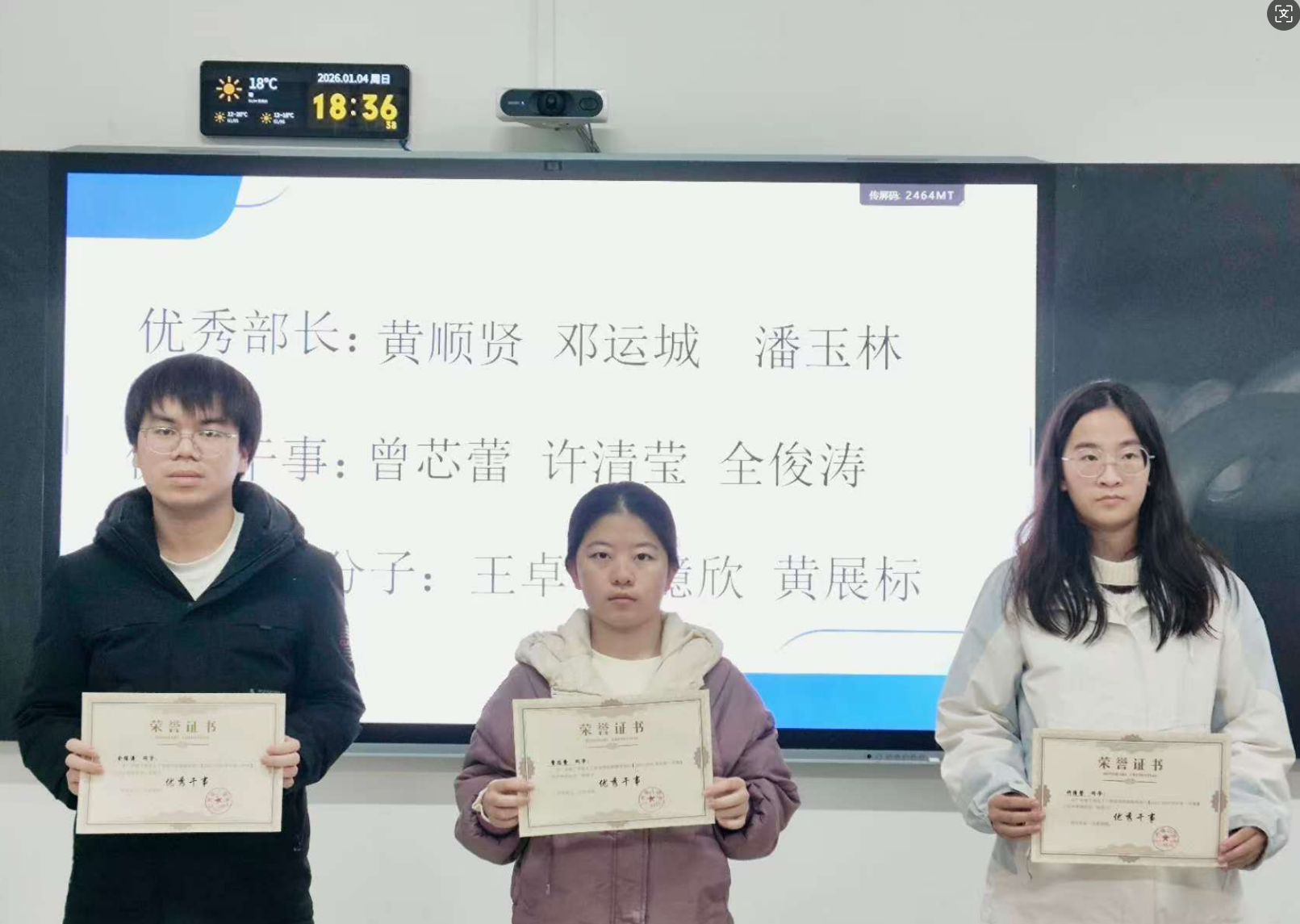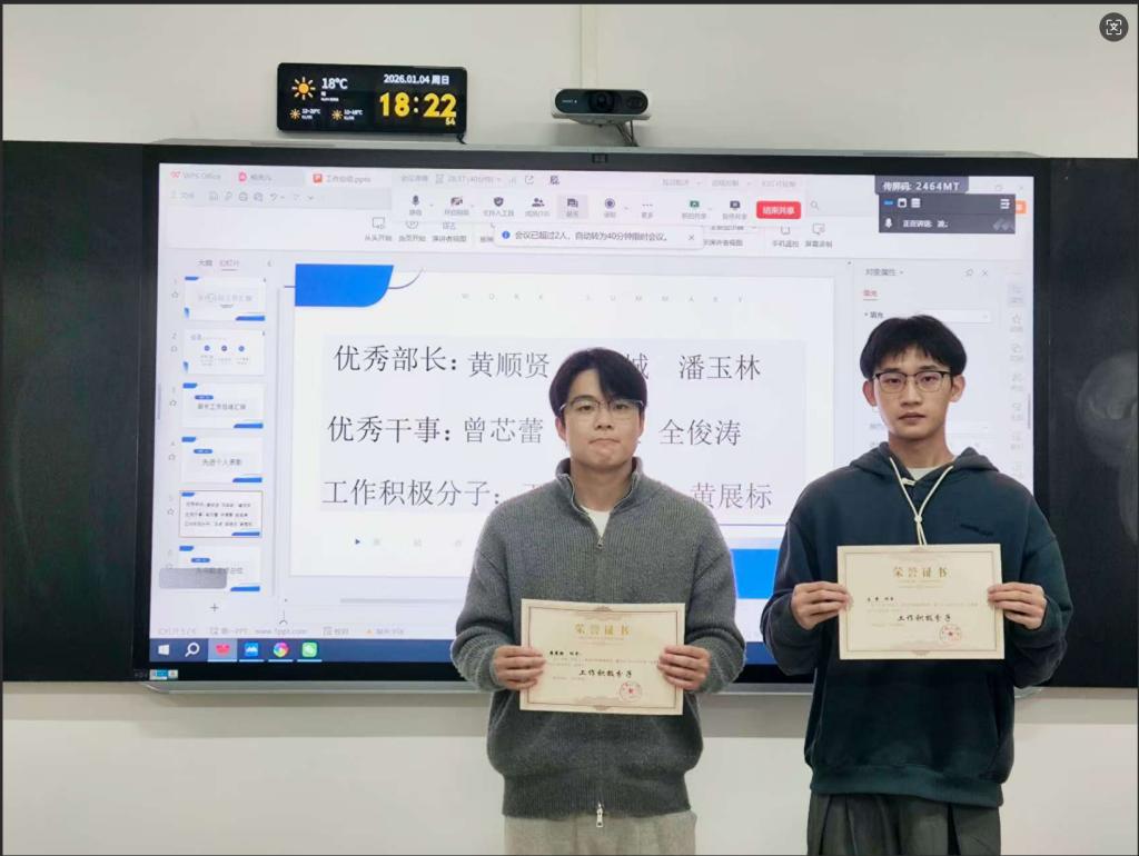 为表彰先进、树立典型,激励全体成员锐意进取,会议进入先进个人表彰环节。指导老师方书靓为本学期表现突出的先进个人颁发荣誉证书,对他们在工作中的勤勉奉献、积极担当与优异成绩给予高度肯定。台下掌声雷动,既是对获奖同学的祝贺,也传递着全体成员向榜样学习、共同进步的坚定决心。