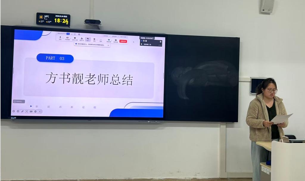 最后,方书靓老师作总结讲话。她首先代表学院向融媒体中心全体成员本学期的辛勤付出与不懈坚守表示衷心感谢,对各部门取得的工作成效给予充分认可。她指出,融媒体中心作为学院宣传工作的重要阵地,是展现学院风貌、传递师生心声的关键窗口,全体成员以青春之名扛起宣传重任,用创意与汗水为学院营造了积极向上的舆论氛围,为学院发展注入了强大精神动力。