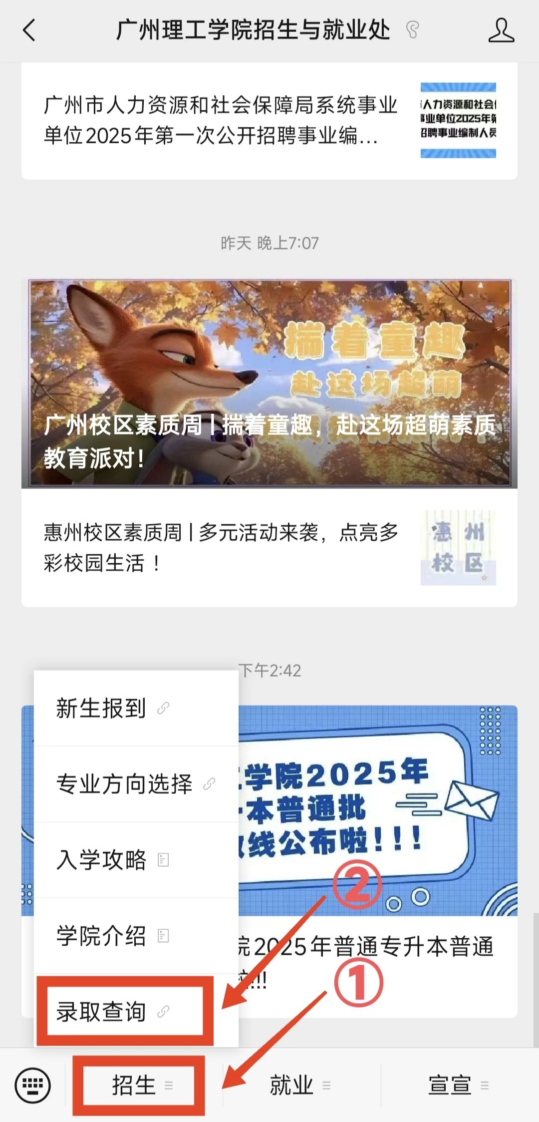 2.通过“威廉希尔招生与就业处”微信公众号查询