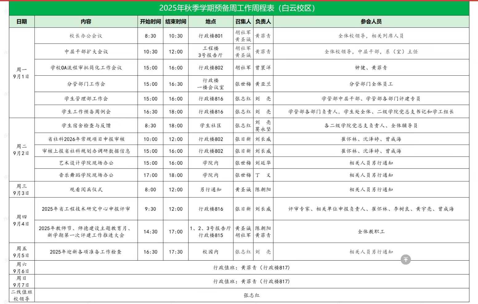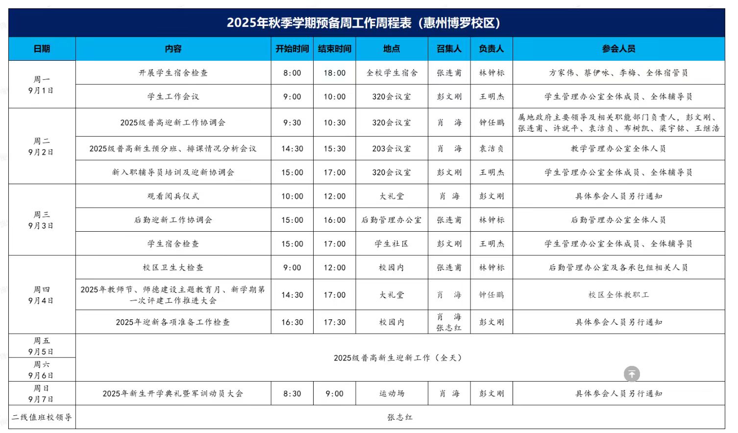 2025年秋季学期预备周工作周程表
