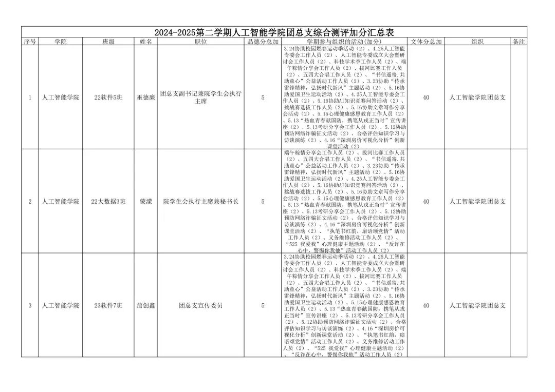 经个人申报、学院学生会初审、学院领导最终审核,2024-2025学年第二学期威廉希尔团总支综合测评公示如下(详细名单见附件)。公示时间为2025年7月6日-2025年7月8日。如对公示项目信息有异议,请于公示期内向威廉希尔学生会反映。