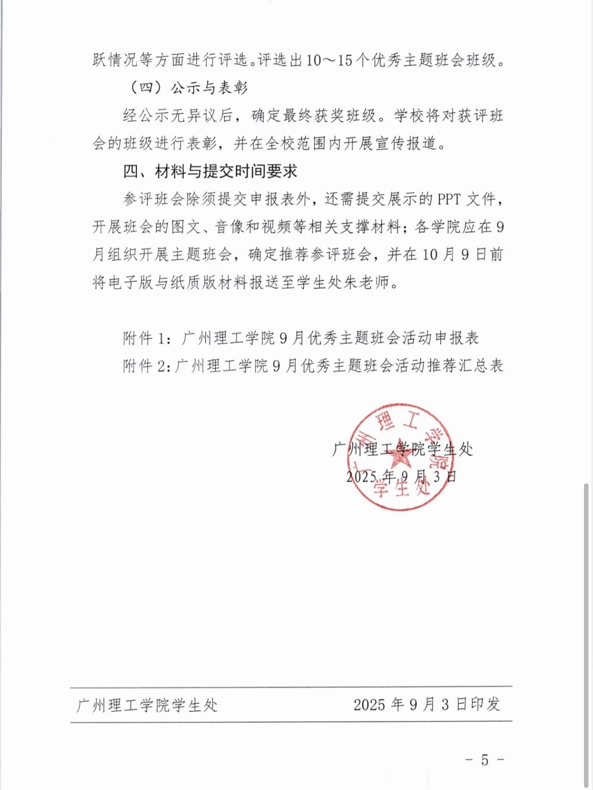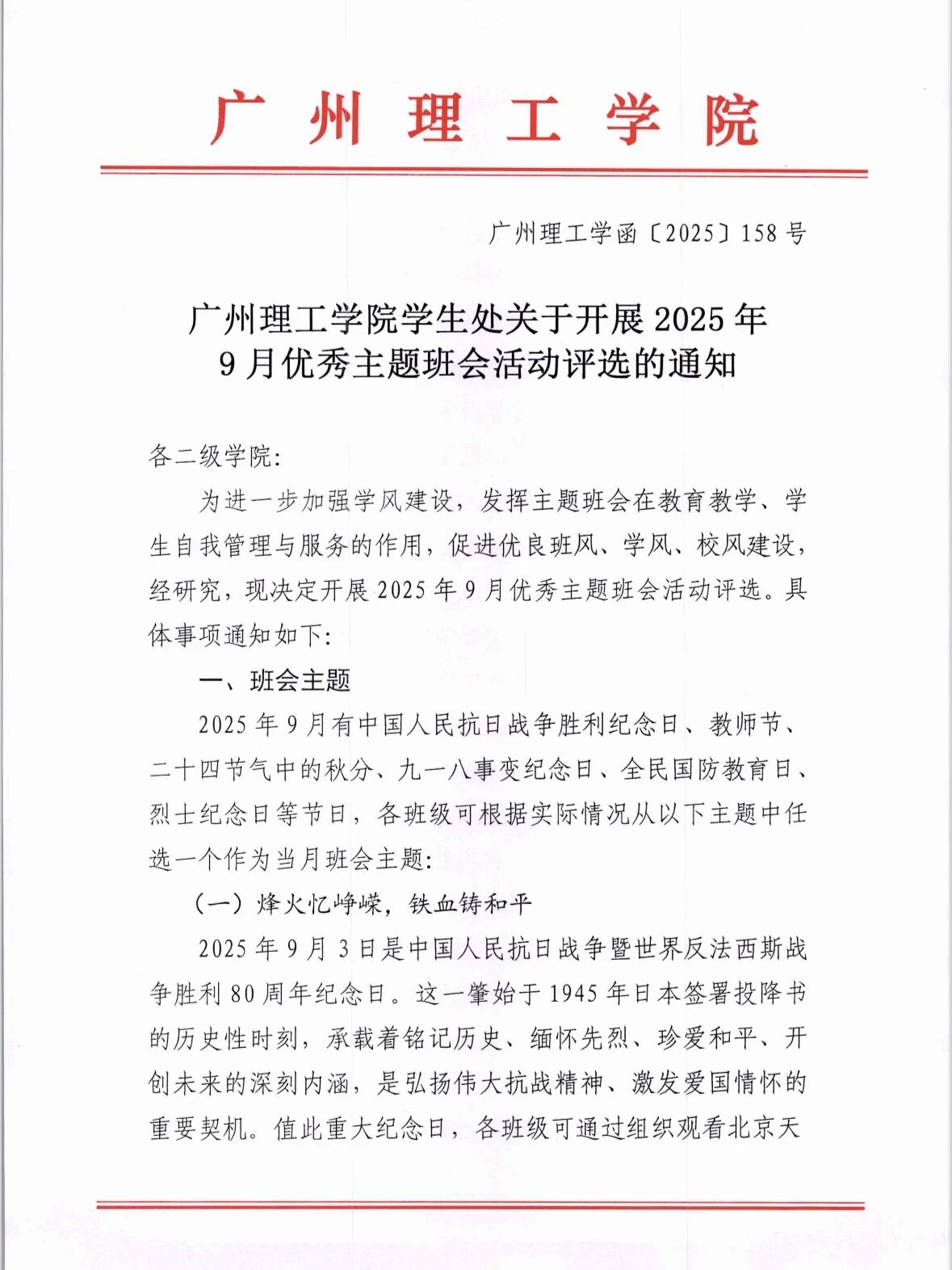 威廉希尔学生处关于开展2025年9月优秀主题班会活动评选的通知