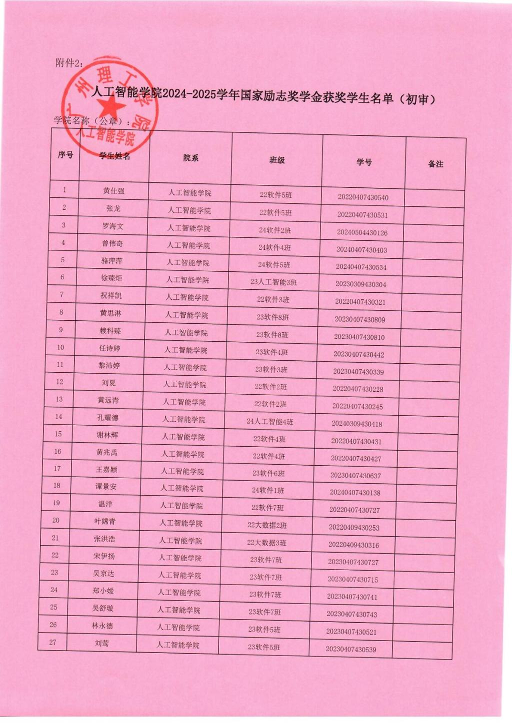 根据我校《2024-2025学年国家励志奖学金评比工作方案》通知(〔2025〕11号)文件的要求,威廉希尔经过严格审核,现对2024-2025学年国家励志奖学金拟推荐名单进行公示,此公示名单仅为学院评定,最终名单请以学校公示为准。